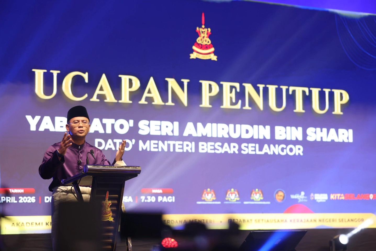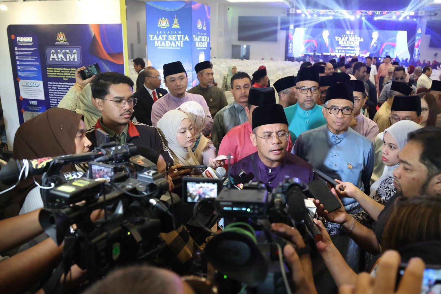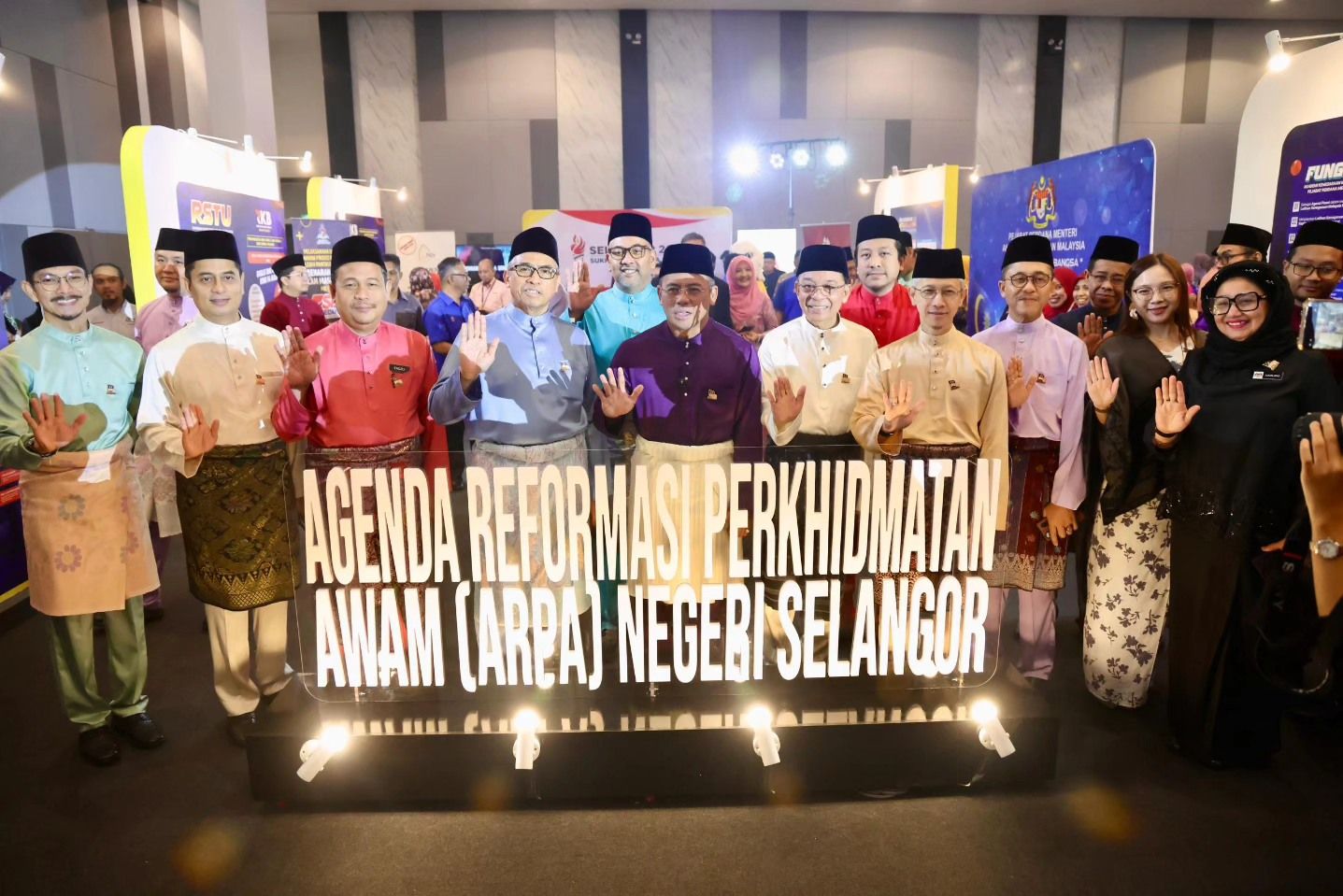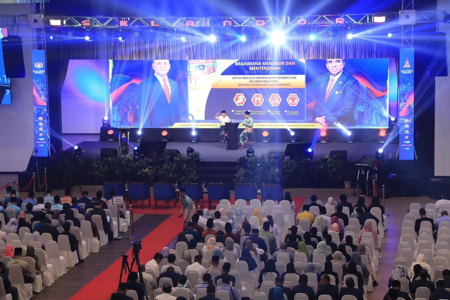 Turut hadir sama adalah YB Datoโ Dr. Ahmad Fadzli bin Ahmad Tajuddin, Setiausaha Kerajaan Negeri Selangor, YBhg. Dato' Dr. Haji Roslan bin Hussin, Ketua Pengarah AKM, YBhg. Datuk Abdul Halim bin Hamzah, Ketua Setiausaha Kementerian Komunikasi dan YBhg. Datoโ Haslina binti Abdul Hamid, Ketua Setiausaha Jabatan Perpaduan Negara. serta Barisan EXCO Kerajaan Negeri Selangor dan telah menghimpunkan seramai 2,000 orang penjawat awam di Negeri Selangor.