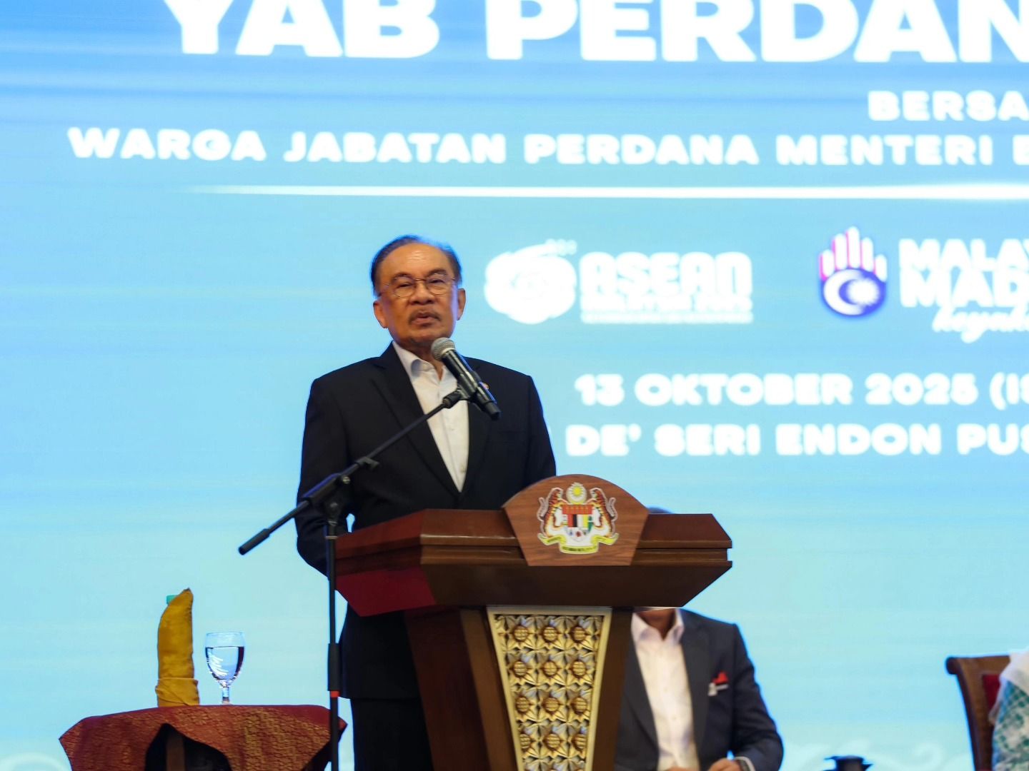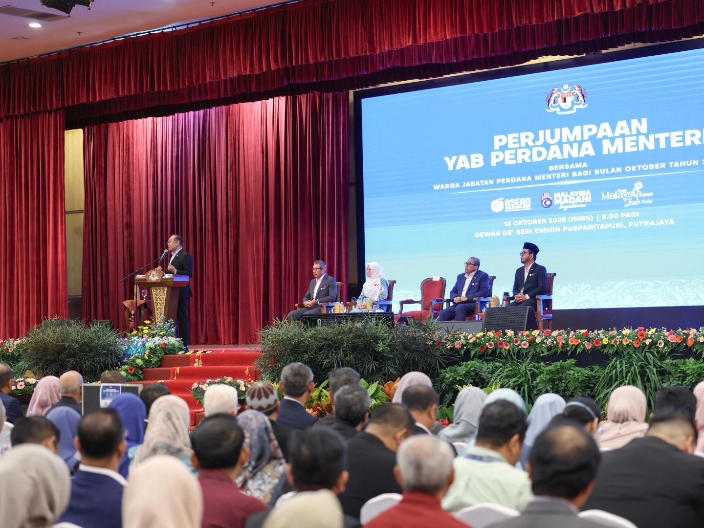Perjumpaan YAB Perdana Menteri Bersama Warga Jabatan Perdana Menteri bagi Bulan Oktober 2025 telah berlangsung pagi ini bertempat di Dewan Deโ Seri Endon, PUSPANITAPURI.