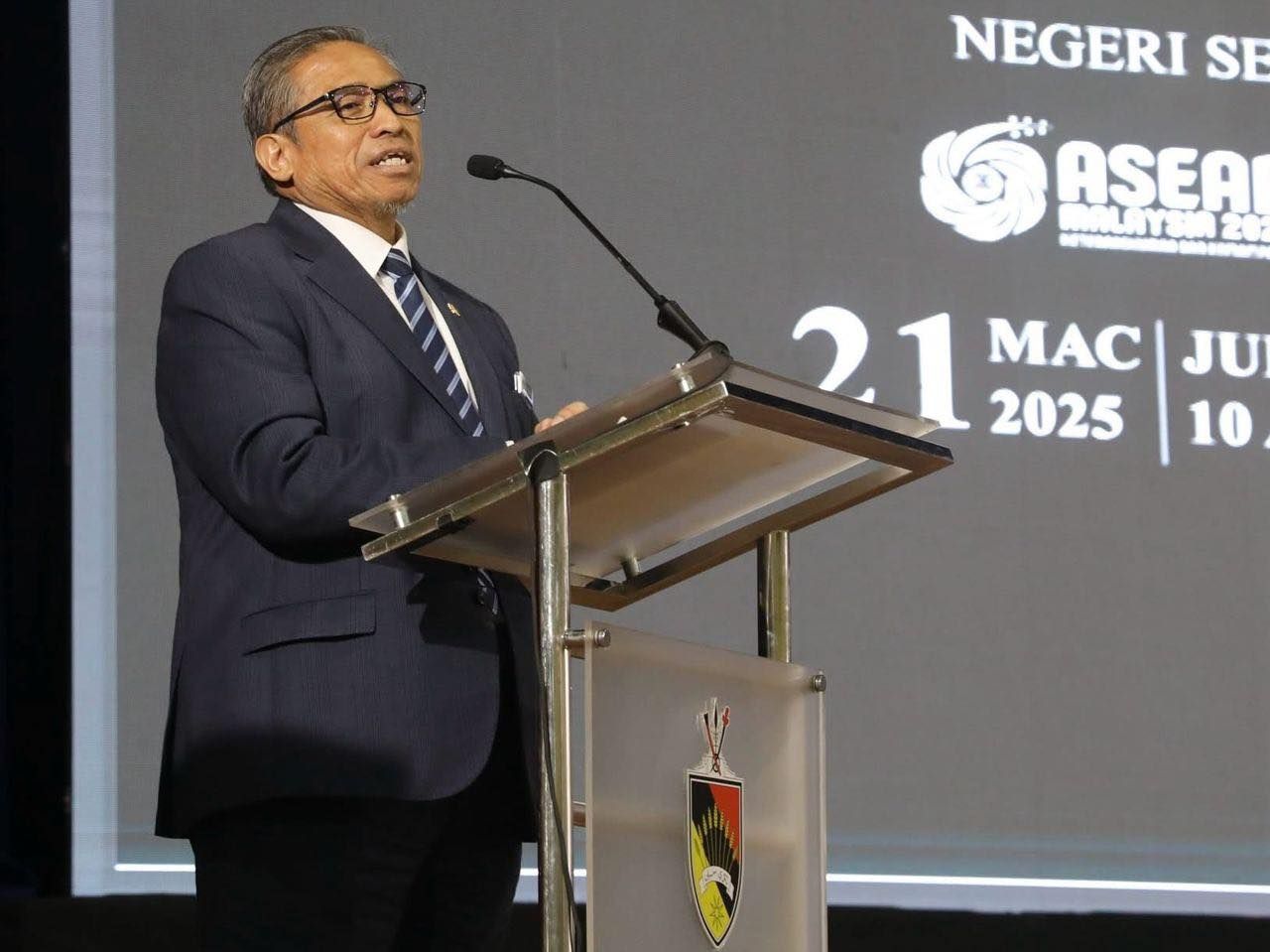 Ucapan penutup oleh YAB Datoโ Seri Utama Hj. Aminuddin bin Harun, Menteri Besar Negeri Sembilan yang telah menyatakan harapan kepada penjawat awam persekutuan dan negeri supaya dapat bekerja dalam satu pasukan untuk memastikan agenda Malaysia MADANI dapat direalisasikan.